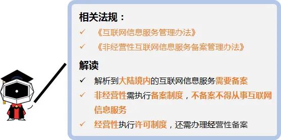 根據(jù)上述政策規(guī)定,解析至中國大陸境內(nèi)服務(wù)器的網(wǎng)站等服務(wù),必 須完成備案才可對外提供服務(wù)。